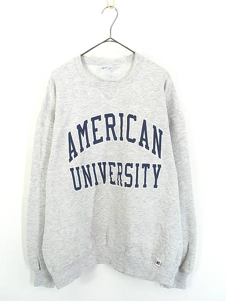 古着 90s USA製 Russell 「AMERICAN UNIVERSITY」 カレッジ 前V スウェット トレーナー XL