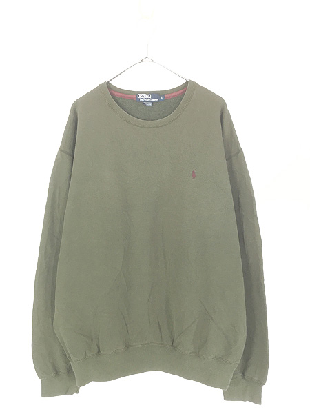 古着 Polo Ralph Lauren ワンポイント ソリッド スウェット トレーナー オリーブ L