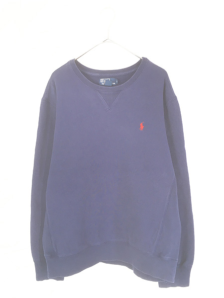 古着 Polo Ralph Lauren ワンポイント 前V ヘビー スウェット トレーナー ネイビー L