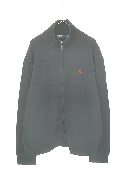 古着 Polo Ralph Lauren ワンポイント ソリッド ポケット付 ハイゲージ コットン ニット ジップ カーディガン ブラック L