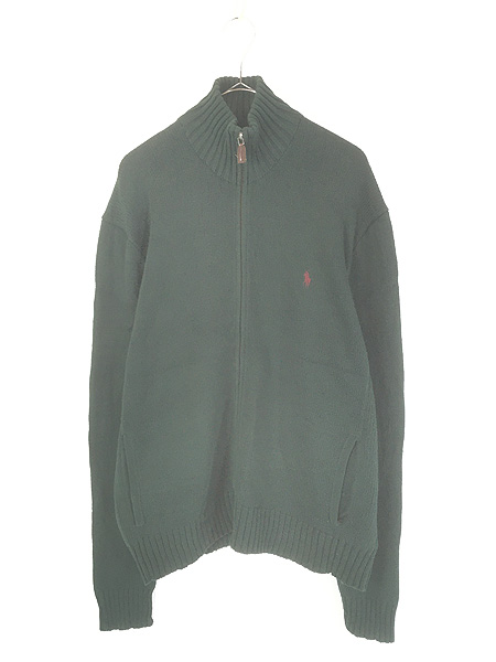 古着 Polo Ralph Lauren ワンポイント ソリッド ポケット付 コットン ニット ジップ カーディガン オリーブ M