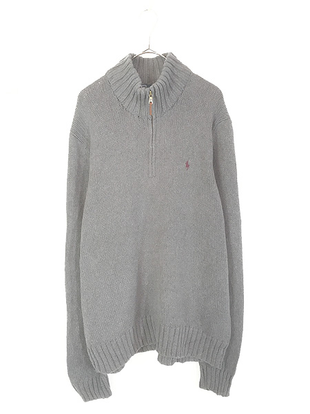 古着 Deadstock!! Polo Ralph Lauren ワンポイント ソリッド ハイネック ハーフジップ コットン ニット セーター グレー L
