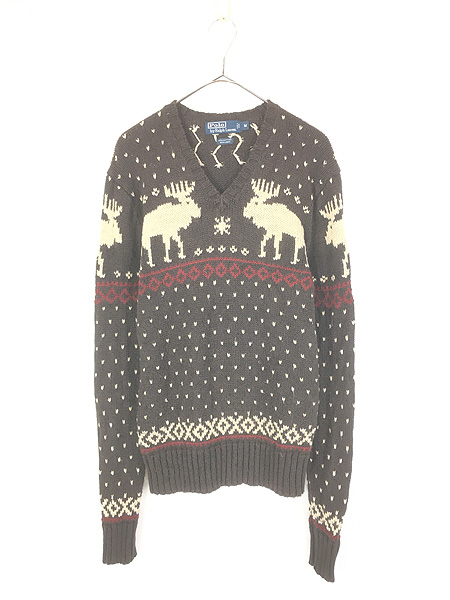 古着 Polo Ralph Lauren トナカイ バーズアイ コットン リネン ニット セーター M