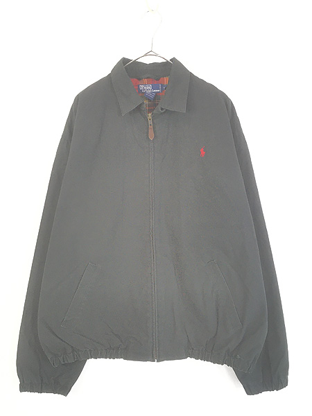 古着 90s Polo Ralph Lauren チェック ライナー ワンポイント コットン ツイル スウィングトップ ジャケット ブラック L