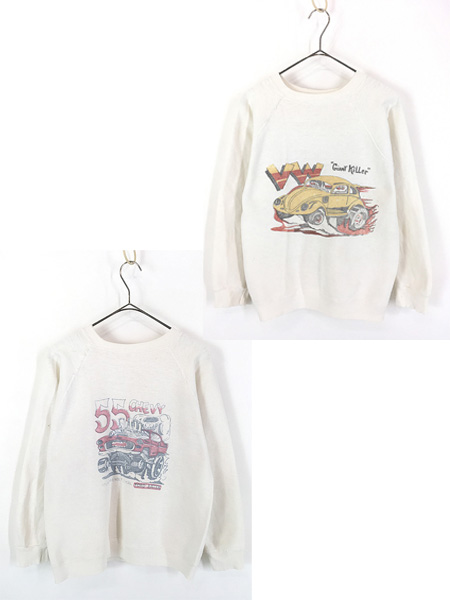 古着 60s 55 CHEVY × Giant Killer 豪華 両面 染み込み 100%コットン ヴィンテージ スウェット トレーナー M位
