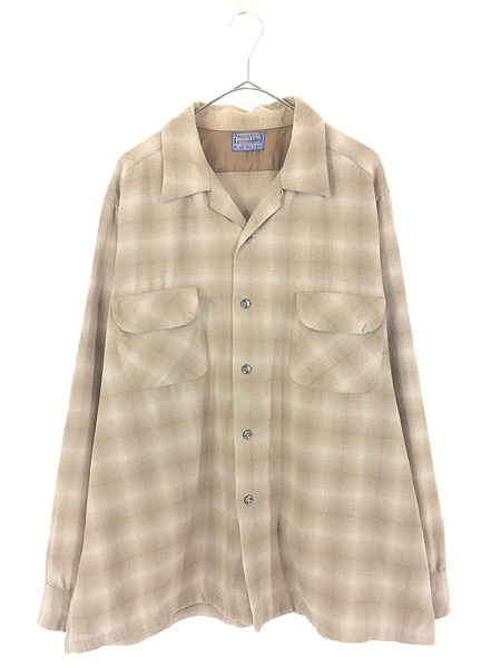 古着 60s Pendleton ブラウン オンブレ シャドー チェック 開襟 ボックス ウール ボード シャツ XL