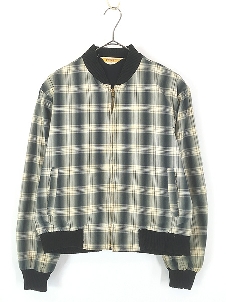 古着 50s PENNEY'S 好配色 オンブレ シャドー チェック フルジップ コットン ジャケット ブルゾン 40