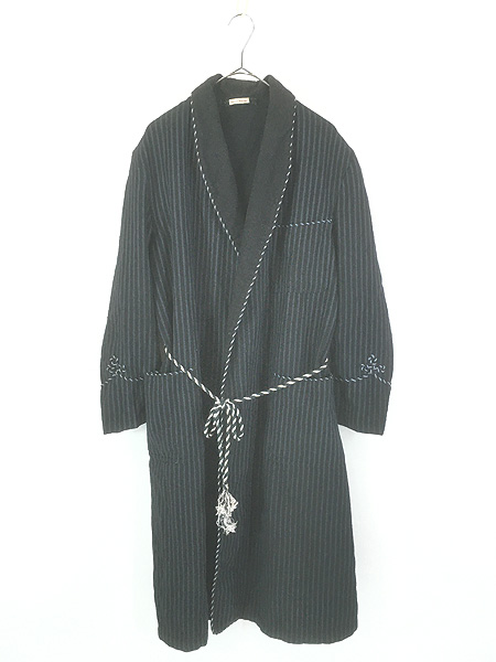 古着 50s BRADLEYS ブラック × グレー ストライプ ウール ガウン コート XL位