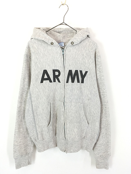 古着 80s USA製 Champion 「ARMY」 リバース タイプ ミリタリー スウェット ジップ パーカー L