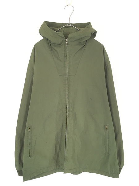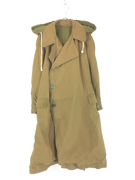 古着 70s ポーランド軍 ミリタリー コットンサテン ダブルブレスト フィールド コート フード付 XL位