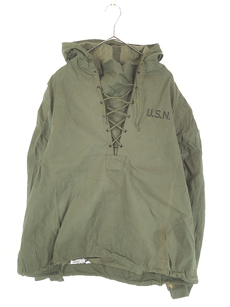 古着 40s 米軍 USN N-2 WET WEATHER PARKA ミリタリー ゴム引き コットン レースアップ レイン パーカー M 極上!!