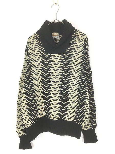 古着 60s Himalaya × Jacobs ブラック × ホワイト 幾何学 パターン ショールカラー ウール ニット セーター L