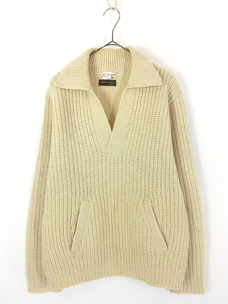 古着 70s Brooks Brothers Brooksgate 襟付 スキッパー ネック 畦編み ヘビー ウール ニット セーター M