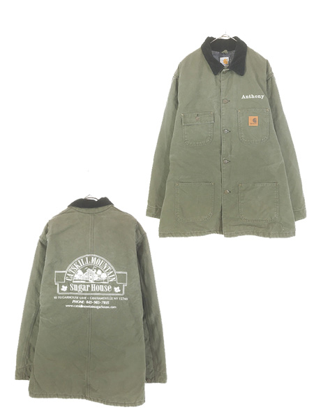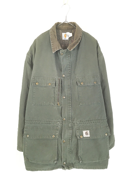 古着 00s Carhartt 裏地 ポリコットン ツイル DMS ダークモス ワーク ジャケット M Regular