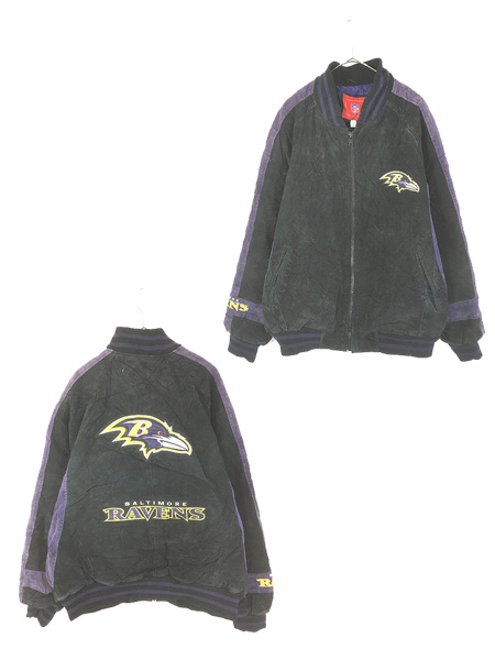 古着 00s NFL Baltimore Ravens レイブンズ 本革 スエード レザー スタジャン ジャケット L
