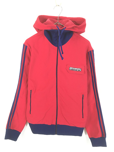 古着 70s ユーゴスラビア製 adidas 3ライン ハイネック フード付 ジャージ トップ トラック スーツ レッド 48