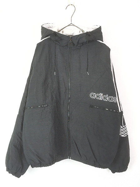 古着 80-90s adidas BIG ロゴ & トレフォイル プリント パデット ナイロン ジャケット パーカー L