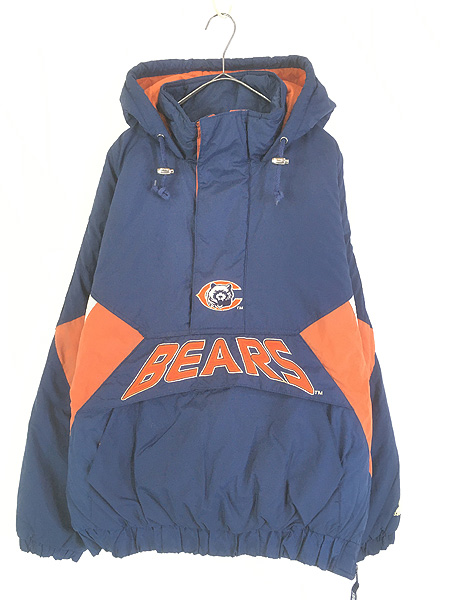 古着 90s STARTER NFL Chicago Bears ベアーズ ハーフジップ パデット ナイロン ジャケット パーカー XL
