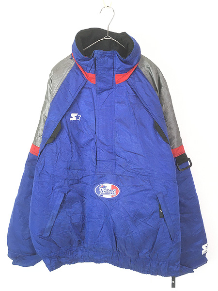 古着 90s STARTER NFL New England Patriots ペイトリオッツ ハーフジップ 2way 光沢 ナイロン パデット ジャケット M