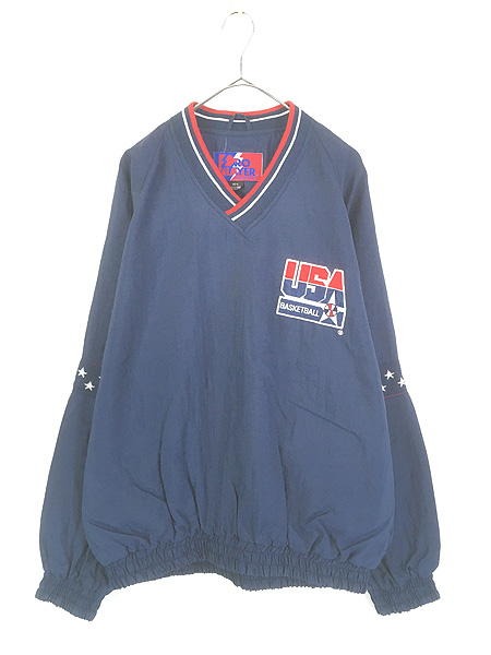 古着 90s Dream Team バスケ アメリカ代表 ドリーム チーム 星条旗 フラッグ ニット アーム ライン プルオーバー ナイロン ジャケット L