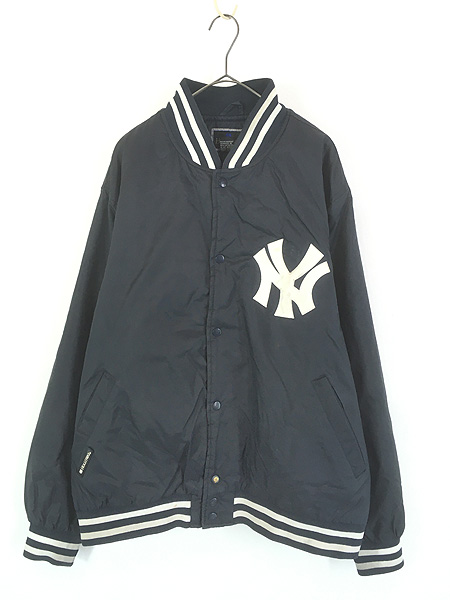 古着 00s Holloway MLB NY Yankees ヤンキース パデッド 光沢 サテン スタジアム ジャケット スタジャン XL
