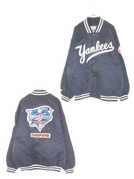 古着 00s Majestic MLB NY Yankees ヤンキース 「2000 World Series」 パデッド 光沢 サテン スタジアム ジャケット スタジャン XL