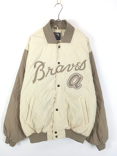古着 90s Majestic MLB Atlanta Braves ブレーブス キルティング スタジアム ジャケット スタジャン XL