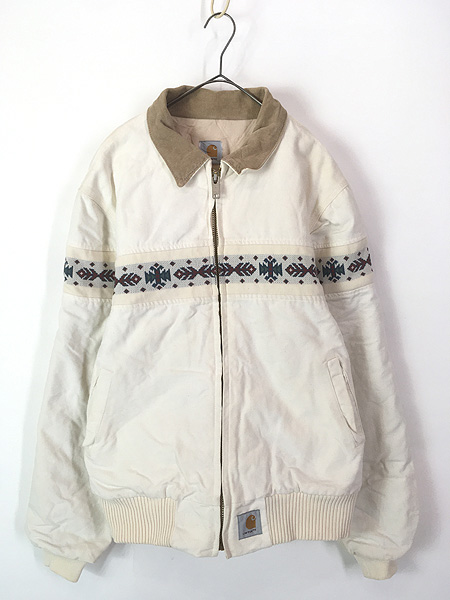 古着 80s- Carhartt ネイティブ パターン!! ホワイト ダック 防寒 パデット ジャケット ブルゾン L位