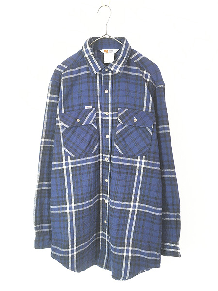 古着 90s USA製 Carhartt ブルー チェック ヘビー フランネル シャツ ヘビネル L Tall