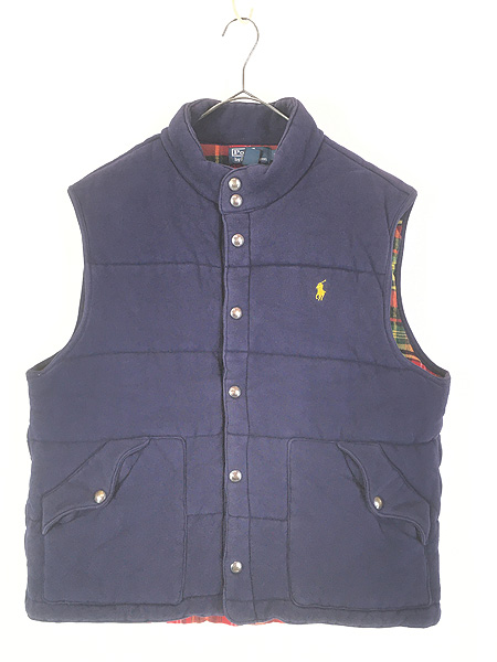 古着 Polo Ralph Lauren ワンポイント ソリッド パデット スウェット ベスト ネイビー XL