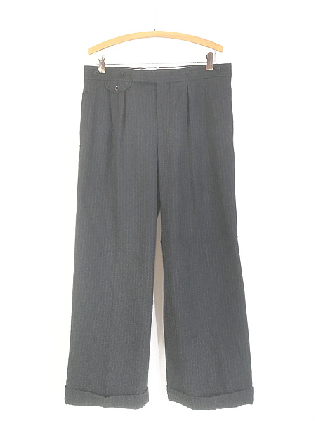 古着 90s Italy製 Polo Ralph Lauren サスペンダー ボタン付 チョーク ストライプ ウール ワイド スラックス パンツ W35 L31