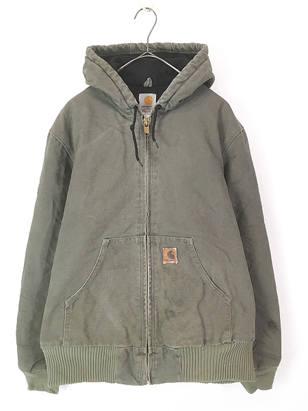 古着 00s Carhartt SAG セージグリーン ダック 防寒 パデット アクティブ パーカー ジャケット S