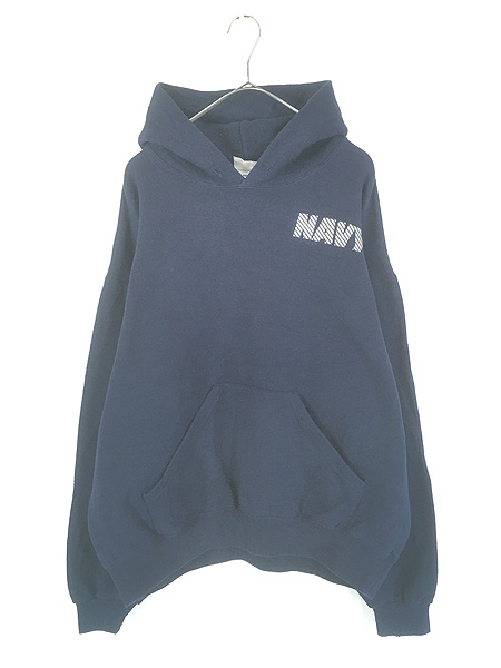 古着 00s USA製 Sofee 「NAVY」 ミリタリー リフレクター スウェット パーカー L
