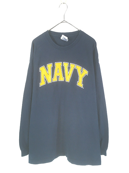 古着 90-00s USA製 「NAVY」 アーチ ミリタリー 100%コットン 長袖 Tシャツ カットソー XL