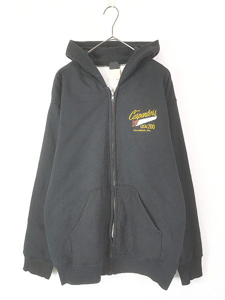 古着 80s USA製 「Carpenters」 裏地サーマル Wフェイス ヘビー スウェット ジップ パーカー ブラック L