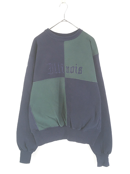 古着 90s USA製 MV Sport Pro Weave 「Illinois」 バイカラー ブロック パターン リバース タイプ ヘビー スウェット トレーナー XXL
