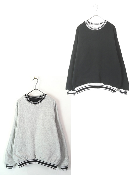古着 90s Pro Player ブラック × グレー リブライン リバーシブル Wフェイス ヘビー スウェット トレーナー L