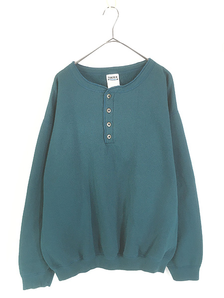 古着 90s USA製 TULTEX 無地 プレーン セットイン ヘンリーネック スウェット トレーナー ビリジアン XL
