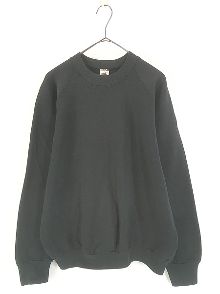 古着 90s USA製 Fruit of the Loom 無地 プレーン ラグラン スウェット トレーナー ブラック L