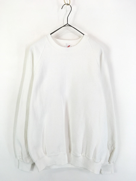 古着 90s USA製 Jerzees 無地 プレーン ラグラン スウェット トレーナー ホワイト L ミント!!