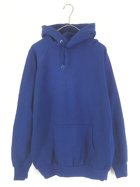 古着 80s USA製 Discus 無地 プレーン ラグラン ヘビー スウェット パーカー ブルー XL