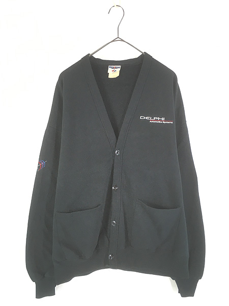 古着 90s Jerzees 「DELPHI」 カラフル ステッチ パチポケ オールド スウェット カーディガン ブラック OSFM