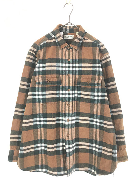 古着 90s LL Bean 「Chamois Cloth」 ブラウン チェック シャモアクロス フランネル シャツ ネルシャツ L