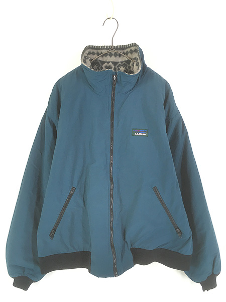 古着 80s LL Bean 「Warm-up Jacket」 ネイティブ 総柄 フリース ライナー シェルド ウォームアップ ジャケット XL位