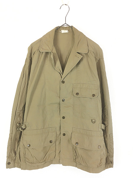 古着 80s LL Bean 2way 多ポケット コットンサテン ハンティング サファリ ジャケット タン M