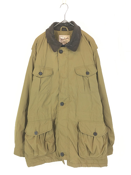 古着 00s WoolRich 本革 レザー襟 光沢 ピーチスキン パデッド カバーオール ジャケット XL