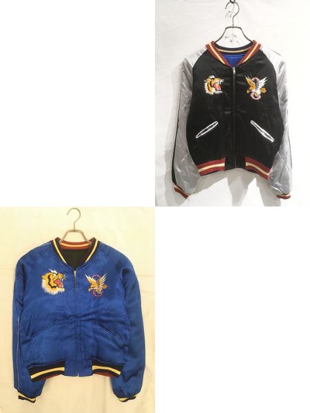 古着 50s 「Japan」 豪華 虎 鷹 サテン リバーシブル スーベニア ジャケット スカジャン M位