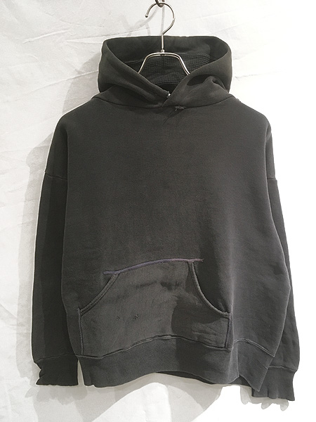 古着 60s 無地 ソリッド セットイン 裏サーマル Wフェイス ヴィンテージ スウェット パーカー ブラック!! XL位