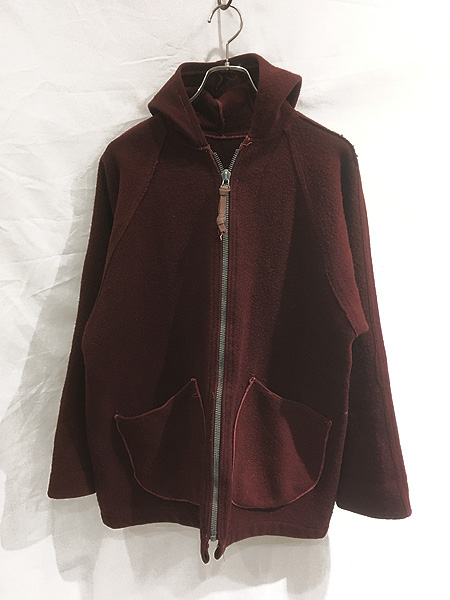 古着 40s- 「ELGIN 17」 パチポケ メルトン ウール フーデッド カデット パーカー ジャケット XL位