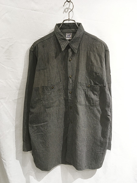 古着 40s JC Penney SUPER OX HIDE 「杢デニム」 ブラック シャンブレー デニム ワーク シャツ 黒シャン XL位